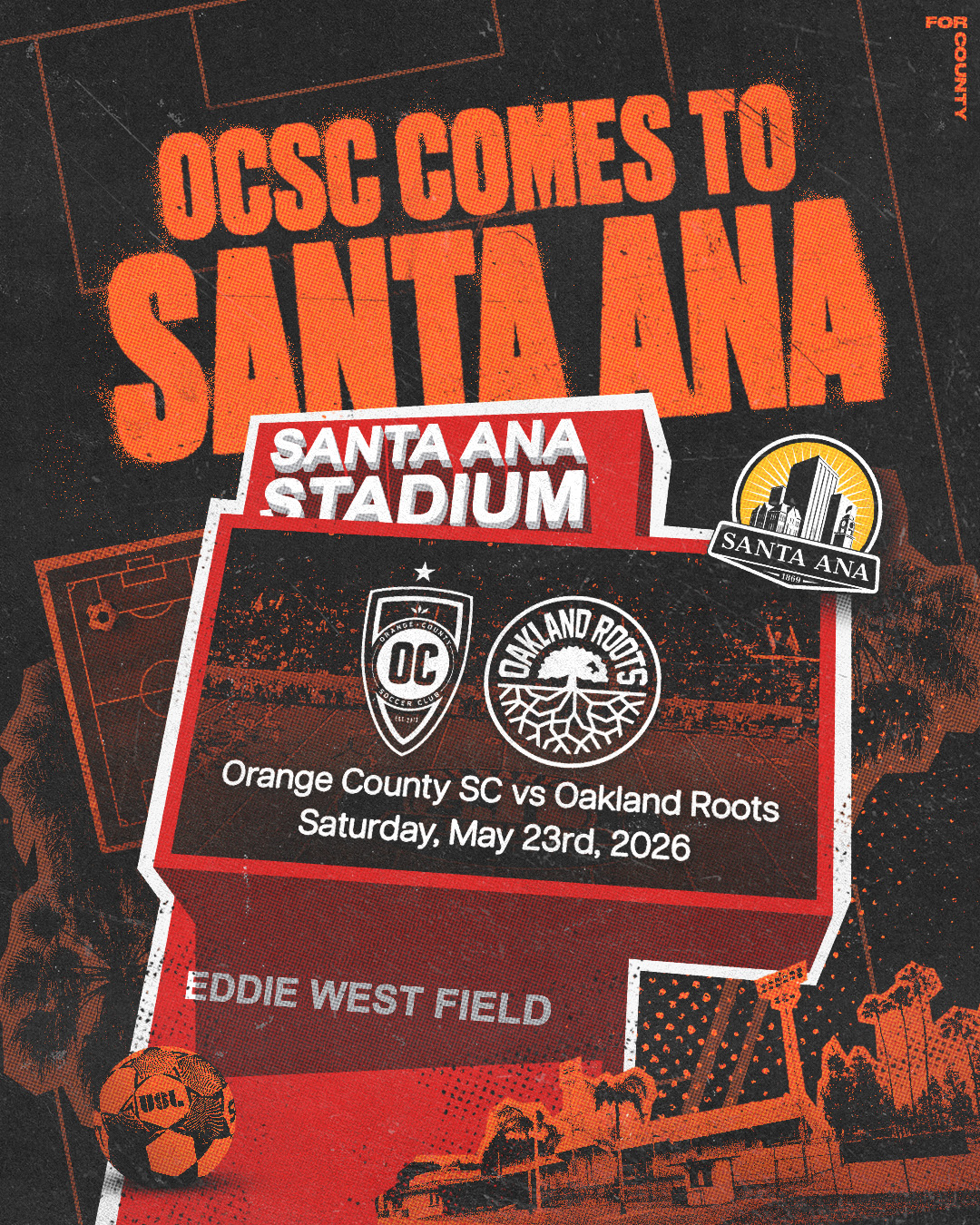 NEXT HOME MATCH: 00days00hours00minutes Our match has begun. Tune in now! Spring Break Beer Fest single MAtch tickets Family 4 Pack Deal TICKET CENTRAL 2026 Season Memberships GROUP TICKETS Premium Experiences LATEST HEADLINES Orange County Soccer Club to Host Historic One-Off Match at Eddie West Stadium in Santa Ana on May 23 Home, NEWS Read More Orange County SC Travels North for a High-Stakes Early-Season Test Against Undefeated Oakland Roots SC Home, NEWS Read More Orange County SC defeats Switchbacks 1-0 with a last-minute thriller goal from Tyson Espy Home, NEWS Read More Orange County SC Aims to End Draw Streak vs Colorado Springs Switchbacks Home, NEWS Read More Jamir Johnson Called Into U18 Men's National Team Roster For March Training Camp in Portugal Home, NEWS Read More FOLLOW US @ORANGECOUNTYSOCCER