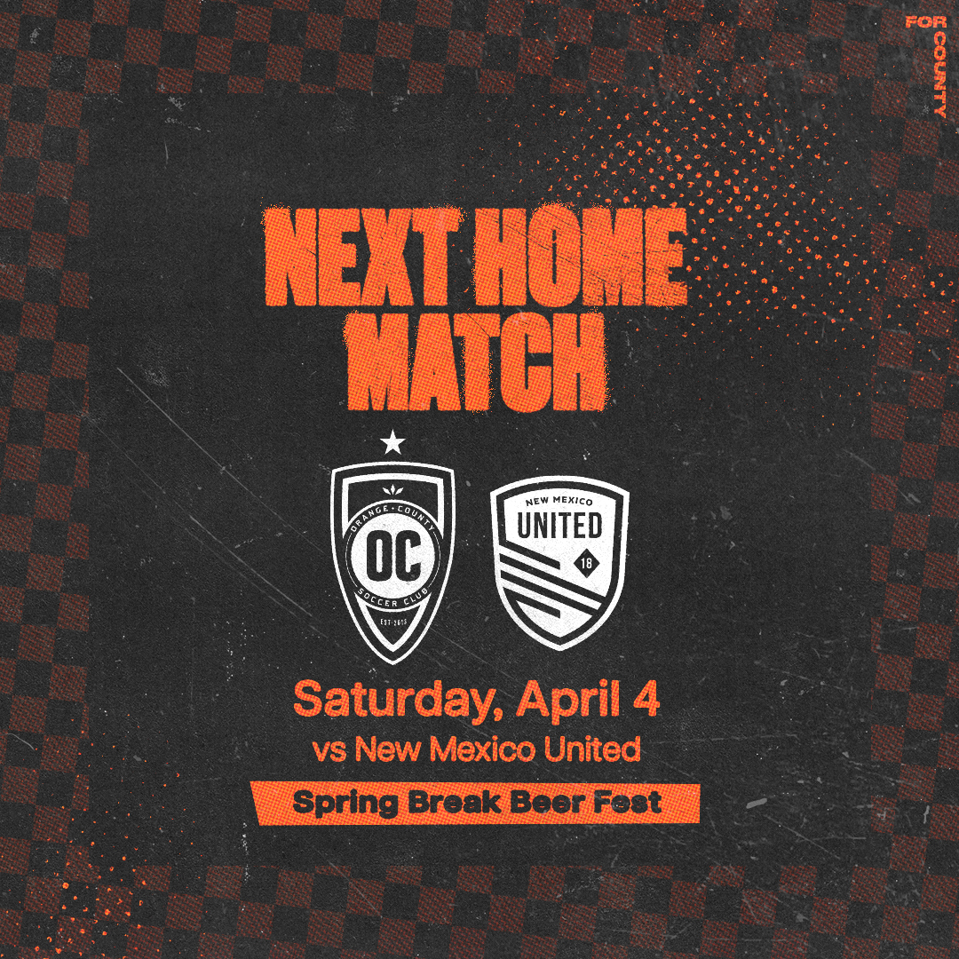 NEXT HOME MATCH: 00days00hours00minutes Our match has begun. Tune in now! Match Tickets Family 4 pack TICKET CENTRAL 2026 Season Memberships GROUP TICKETS Premium Experiences LATEST HEADLINES Orange County SC Look to Extend Strong Start Against New Mexico United Home, NEWS Read More Orange County SC Wins 1-0 Over Oakland Roots SC Home, NEWS Read More Orange County Soccer Club to Host Historic One-Off Match at Eddie West Stadium in Santa Ana on May 23 Home, NEWS Read More Orange County SC Travels North for a High-Stakes Early-Season Test Against Undefeated Oakland Roots SC Home, NEWS Read More Orange County SC defeats Switchbacks 1-0 with a last-minute thriller goal from Tyson Espy Home, NEWS Read More FOLLOW US @ORANGECOUNTYSOCCER