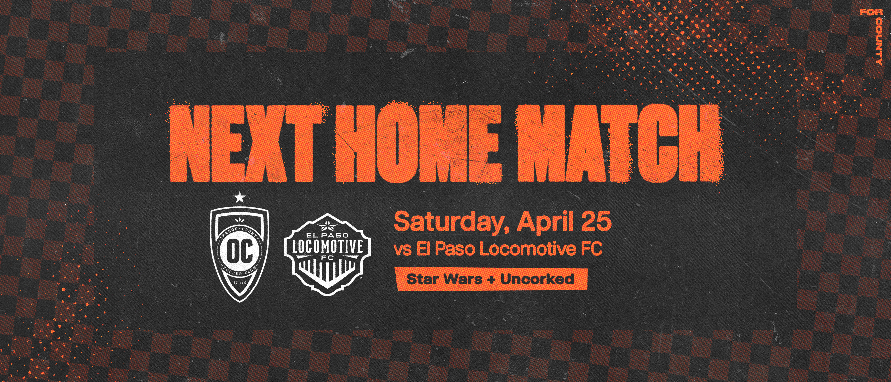 NEXT HOME MATCH: 00days00hours00minutes Our match has begun. Tune in now! Match Tickets Uncorked Tickets TICKET CENTRAL 2026 Season Memberships GROUP TICKETS Premium Experiences LATEST HEADLINES Orange County SC Welcomes Lexington SC to the Champ Home, NEWS Read More Orange County SC Edges FC Tulsa 1-0 to Stay Atop the West Home, NEWS Read More Orange County SC Travels to Tulsa Looking to Defend Top Spot in the West Home, NEWS Read More Orange County SC End San Antonio FCโs Unbeaten Streak in 2-0 Win at Home Home, NEWS Read More Orange County SC Hosts San Antonio FC in Western Conference Showdown Home, NEWS Read More FOLLOW US @ORANGECOUNTYSOCCER