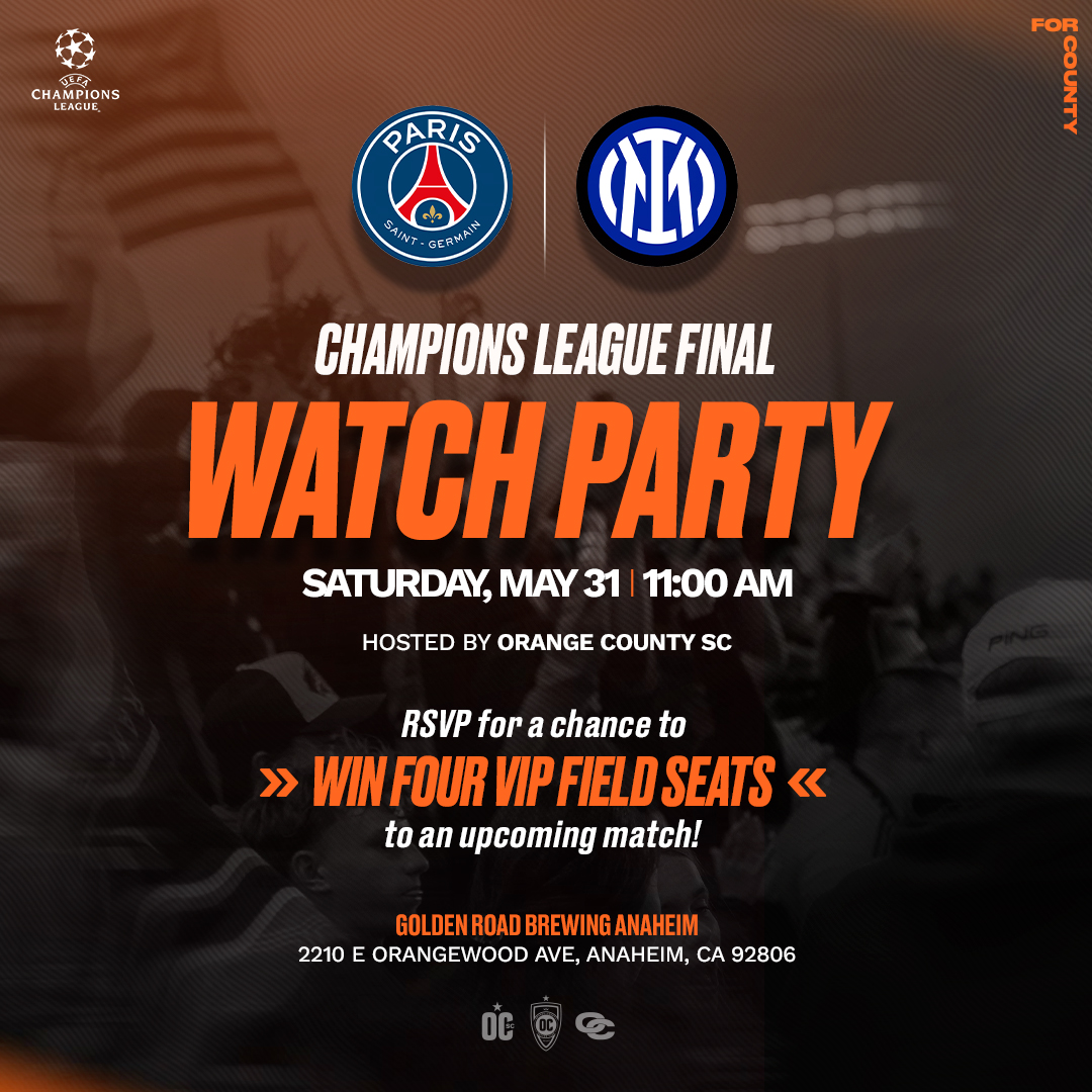 Join us for the Champions League Final Watch Party on Saturday, May 31st at 11:00am, hosted by Orange County SC. Enjoy the biggest match in European soccer surrounded by fellow fans, food, and fun. Limited availability!